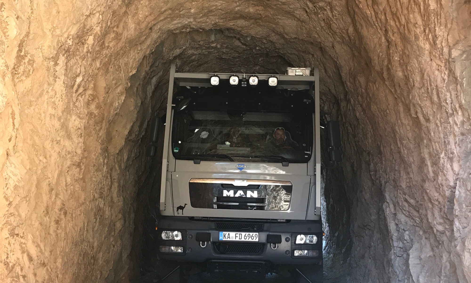 Abbiamo deciso di andare in avanscoperta verso un laghetto formato da un diga , pochi chilometri a sud ovest dalla cittadina di Valderrobres. Imboccata una strada asfaltata molto stretta e un po’ sconnessa, che per un’auto sarebbe facilmente percorribile, lentamente ci siamo avvicinati alla nostra destinazione ma, siamo rimasti bloccati dopo un secondo passaggio in una galleria scavata nella roccia, che presentava dei punti molto stretti. La prima galleria l’abbiamo passata, anche se controllando attentamente di non urtare ma, subito dopo , la seconda galleria a pochi metri dall’arrivo, abbiamo preferito non imboccarla perché il rischio di urtare gli angoli di HW , era molto elevato.