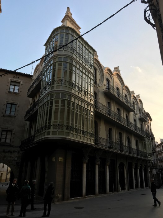 Proprio sotto le mura raggiungiamo la Cattedrale, alla quale si accede da un porta sul retro, in una zona pedonale, di fronte ad un edificio modernista spettacolare , forse uno dei più belli che io abbia visto, appena ristrutturato.