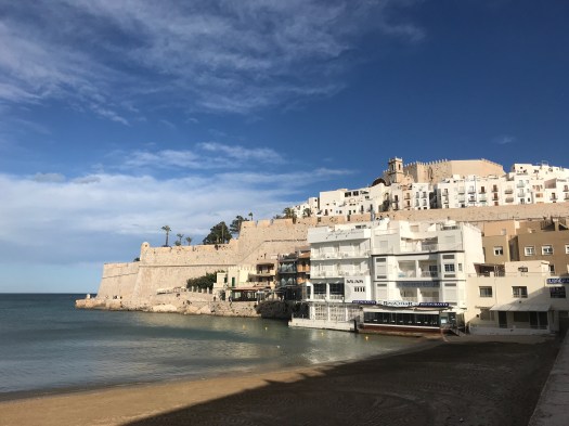 Tornati indietro, sempre lungo lo sterrato, proseguiamo fino a Peniscola e , dopo un giro in quad nel borgo antico , dove però era tutto chiuso ( domenica alle 16,30 non ci sono molti esercizi aperti in questa stagione), percorriamo la passeggiata lungo la sabbiosa spiaggia che si estende larga per diversi chilometri .