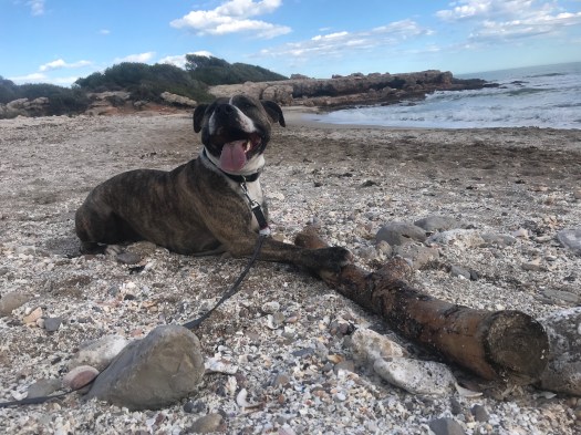 Trascorriamo il pomeriggio nella piccola spiaggerà dove il suolo è ricoperto da conchiglie di tutte le forme e colori; grandi, piccole, intere e sbriciolate, queste conchiglie, mescolate a sabbia, costituiscono il terreno sul quale posiamo il nostro telo e ci sediamo ( io, Davide e Niky), mentre Odino litiga con un grande ramo , spostandolo con il muso e le zampe, quando non riesce con le fauci, a destra e a manca, pretendendo che qualcuno glielo lanci !