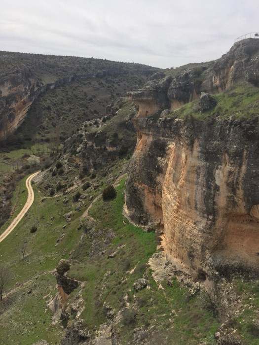 Sporgendoci sui dirupi, mentre passeggiamo fra i resti , seguendo un percorso segnalato, notiamo che fra l’altura dove ci troviamo e le rocce di fronte , si apre una piana verdeggiante, dove scorre un corso d’acqua.