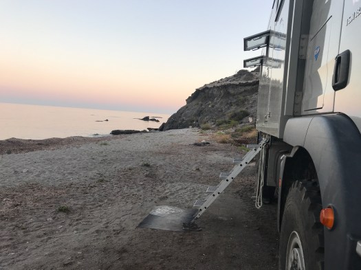 Soste notti su spiagge isolate , bellissime e poco affollate accessibili con fuoristrada a Playa Malnaco (5) e baia prima di villaricos (5). A Calnegre sosta su spiaggia a lato strada vicino ad area sosta (2). Area sosta a Carboneras a tre km dalla città con servizi a 10€(3). Area sosta gratuita ( parcheggio) a Roqueta de Mar sulla spiaggia a e passeggiata , no servizi(2). A Motril sosta in parcheggio del golf club vicino a spiaggia no servizi (3). La alpujarra prima di portugos sosta selvaggia (3).