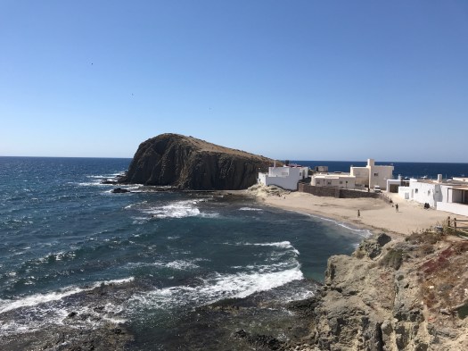 Il borgo antico, caratterizzato da costruzioni tutte bianche , arroccate sulla collina, è il classico paesino con tante botteghe artigiane , con una bella piazza principale , un castello e un belvedere dal quale si gode la vista sulle montagne circostanti e il mare in lontananza . Trascorsa qualche ora del pomeriggio , salendo e scendendo lungo le strette viuzze dopo essere saliti con un ascensore dal parcheggio fino al centro, siamo tornati accaldati dai pelosi che si godevano il fresco dell’aria condizionata . Proseguito fino oltre Carboneras, abbiamo sostato una notte ed il giorno successivo in una area sosta con servizi, posizionata nell’entroterra di un paio di chilometri rispetto alla cittadina marittima. Giornata dedicata alle pulizie e lavatrici , come è necessario fare ogni tanto, siamo ripartiti il giorno successivo, senza avere una meta precisa, sempre a caccia di un bel l’angolo di paradiso dove fermarci.
