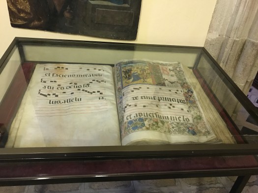 a seguire si entra nella stanza dei libri dove si trovano enormi testi sacri , del peso di oltre 50kg ognuno, scritti e disegnati a mano , con il gigantesco leggio rotante che poteva portarne fino a 17.