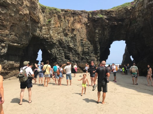 Giunti nella cittadina, scopriamo che occorre percorrere ancora una decina di chilometri, verso ovest, per raggiungere playa de la Catedral , famosa per i suoi scogli bucati che si ergono sulla spiaggia quando c’è la bassa marea ma, che vengono sommersi, quando il mare ruba terreno all’arena.