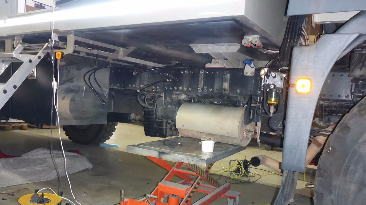 Abbiamo pensato di fare anche alcune modifiche che da tempo studiavamo, come spostare il silenziatore dello scarico all’interno del telaio, per fare posto ad un nuovo box che conterrà il generatore e tutti i cavi elettrici, e un serbatoio supplementare da 100 litri per la benzina del quad con una pompa elettrica specifica per travasarla.