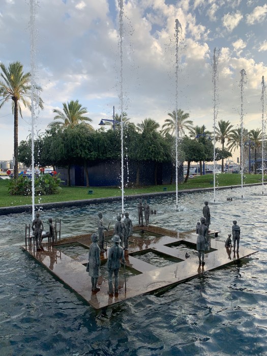 Lunedì 16, Nuria e suo marito, ci hanno condotto al porto; questa area, si divide in una zona di peschereccio ed in quella lussuosa, per le mega imbarcazioni, dove siamo rimasti abbagliati dalla maestosa eleganza di una barca a vela che si chiama Athena e della mostruosità delle dimensioni di un paio di “ città galleggiati” dalla lunghezza superiore ai 50 metri, appartenenti a qualche emiro del Katar ( il porto è stato dato in concessione proprio a loro). Dopo aver camminato lungo la banchina dove si trovano un museo e le modeste abitazioni che furono dei pescatori, abbiamo proseguito il tour con una passeggiata in centro, nella zona antica della città e sulla rambla che termina con un balcone che si affaccia sul mare.