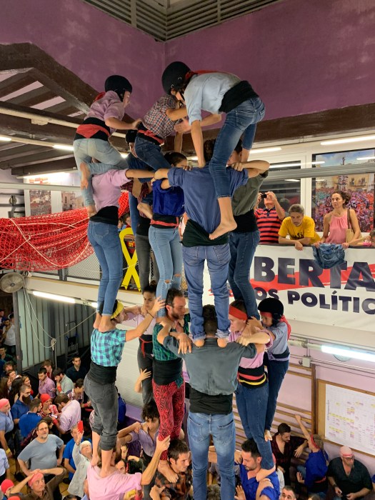A partire da domenica 15 infatti, ci siamo recati in piazza del municipio a Tarragona, per assistere alla manifestazione dei castelli umani, durante la quale, migliaia di spettatori , indigeni e turisti, si radunano in questo luogo ad applaudire atleti di tutte le età e ceti sociali che , animati da un forte senso della tradizione, creano delle pigne umane , montandosi sulle spalle, uno degli altri, al fine di costruire veri e propri “castelli umani” , alternando le figure e le persone che costituiscono ogni piano della pigna.