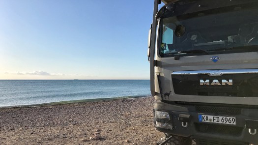 Dopo il pranzo trascorriamo il pomeriggio adagiati sui ciottoli della spiaggia a pochi metri dal truck. Lo svantaggio delle spiagge di sassi è che sono decisamente più scomode rispetto a quelle di sabbia ma, una volta rientrati non si ha l’inconveniente di portare sabbia sul camion.