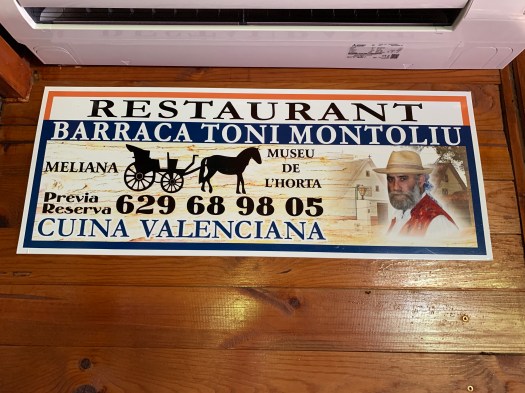 Dopo aver sostato una giornata presso la spiaggia di Puig, vicino a Sagunto, dove ci ha raggiunto Alberto, un ragazzo che si è messo in contatto con noi tramite la nostra pagina di fb, e aver trascorso la giornata del compleanno di Davide prendendo il sole e facendo bagni con i pelosi in mare, abbiamo scelto di celebrare il compleanno del coniuge ed il mio onomastico ( San Francesco 4 ottobre) a “metà strada” , il giorno 3 , andando a pranzo a Meliana , presso la Barraca di Toni Monliou. Anche lo scorso anno eravamo stati in questa trattoria, aperta solo per il pranzo, nel periodo della Fallas di Valencia; da Toni, servono un menu fisso, che spazia fra vari antipasti tipici ( patata bravas , anguilla in umido, humus di fagioli bianchi, insalata mista) e la famosa paella Valenciana , per concludere con una torta di zucca e arancia e un ottimo liquorino fresco, per digerire.