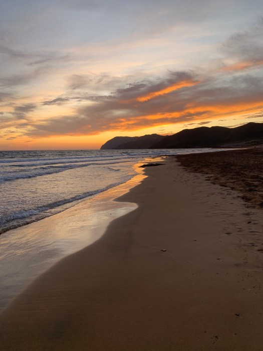 Decidiamo, a metà pomeriggio, di andare a fare un giro con il quad e ci rechiamo a visitare una zona parco distante una decina di chilometri . Si tratta di una area denominata Calblanque caratterizzata da una serie di piccole baie che si raggiungono tramite una strada sterrata. Ci divertiamo a scattare foto in spiaggia, al tramonto e ad apprezzare la natura incontaminata e protetta. Quando il tramonto sta virando dai colori del fuoco a quelli della notte, rimettiamo in moto il quad e torniamo velocemente verso Hw.