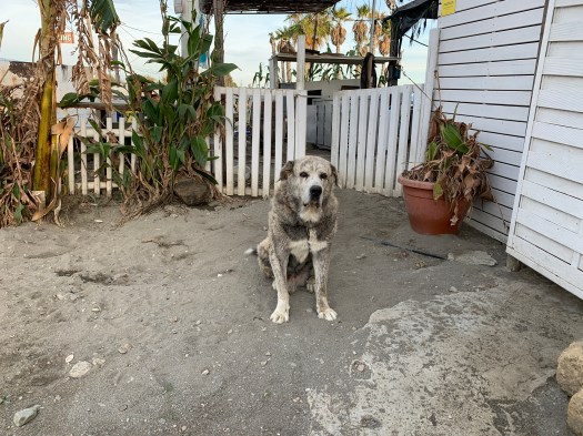 Questa mattina, verso le 11, siamo tornati a Torre Del Mar, con il quad, per andare dall’estetista e poi, tornati indietro sulla spiaggia, abbiamo pranzato. Oggi non c’è molto vento ed è piacevole rimanere sulla spiaggia deserta a prendere un po’ di sole. In questi giorni ho fatto amicizia con due cagnoni pastori, legati a catena ad un chiringuito deserto. Il maschio è anziano mentre la femmina è giovane e, questa mattina , è riuscita a sganciarsi dalla catena; l’ho trovata mentre vagava intorno al truck, attirata forse dall’odore dei miei cani. Fortunatamente sono riuscita ad attirarla con l’ausilio di qualche dolcetto e, dopo averla coccolata, l’ho dovuta rilegare nel chiringuito. Anche il maschio, che peserà 60 chili, non è propriamente un cane da guardia nonostante il suo aspetto e l’abbaio potente. Quando mi sono avvicinata per riportare la femmina, ha preteso coccole alla sua enorme testa, uggiolando e spingendomi, appena smettevo. I due cani sono in buona salute ma è terribile che siano legati con una catena lunga un paio di metri, per tutto il giorno e la notte. Entrambi hanno una ciotola per l’acqua piena e non ci sono escrementi dove sono legati.