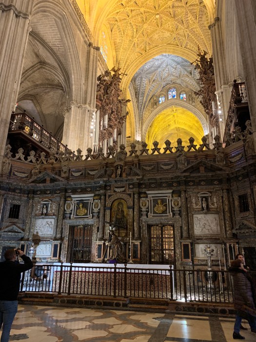 Il primo giorno, abbiamo cominciato la visita con la Cattedrale e, con l’ausilio dell’audioguida, abbiamo imparato la storia e la descrizione di tutte le cappelle e le sale presenti nella chiesa di Siviglia.