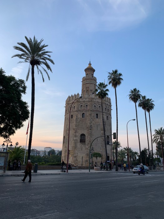 Abbiamo continuato la passeggiata dirigendoci verso la zona della Plaza de toro osservando dall’esterno una fra le più famose arene della Spagna; abbiamo avuto anche modo di ammirare la torre dell’Oro , che si affaccia sul fiume Guadalavir e guardare dall’esterno quello che doveva essere, all’inizio del secolo, uno degli hotel più lussuosi d’Europa, l’Alfonso XIII ( non siamo entrati perché, per come siamo vestiti, ci avrebbero buttati fuori 🙂