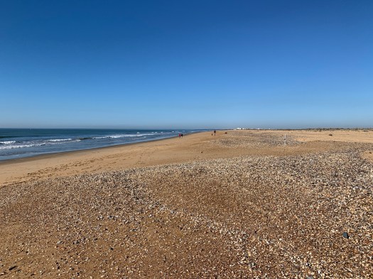 Dopo qualche tentativo vano, abbiamo passeggiato su un grande spiaggione reso particolare dalla presenza di milioni di conchiglie sulla sabbia.