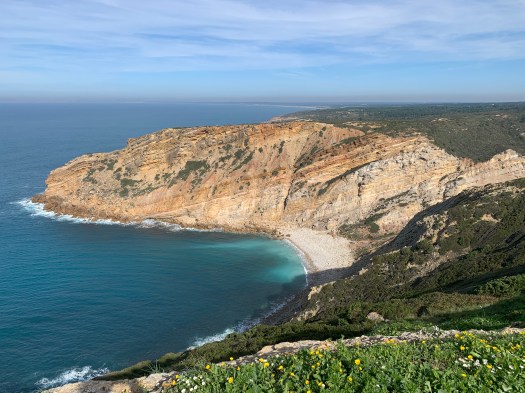 Abbiamo proseguito poi il nostro tour , raggiungendo capo Epichel dove si trova una grande chiesa del settecento , Nossa Senhora do Cabo, fiancheggiata da foresterie per i pellegrini ora in disuso e, a poca distanza, il faro che si erge sul promontorio con scogliere molto elevate.