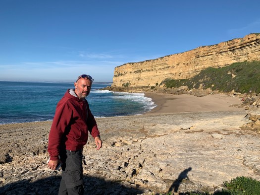 A piedi è possibile scendere alla spiaggia sottostante (cala di Praia Los lagosteiros) incontrando rocce dove sono impresse orme di dinosauro.