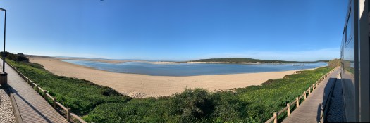 Ci fermiamo in un tratto di spiaggia non troppo distante dalla città, poiché domani desideriamo passare il ponte ed entrare a Lisbona .