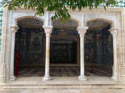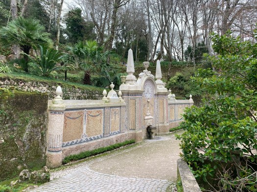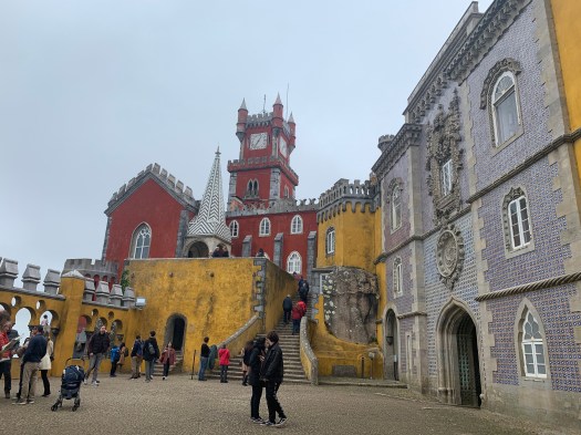 Risaliti sull’autobus per evitare di percorrere 400 metri in salita, siamo poi arrivati al palazzo de Pena, riconoscibile in molte foto di guide, per i colori rosso e giallo delle sue torri merlate e cupole a cipolla. Considerato la più grande espressione del romanticismo portoghese del XIX sec., è decisamente più impattante al suo esterno che al suo interno, anche se non mancano tesori in porcellana e mobili in stile portoghese.
