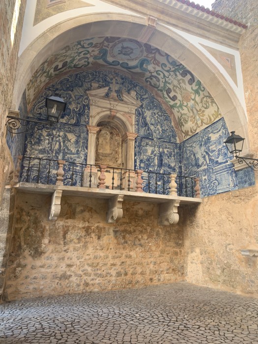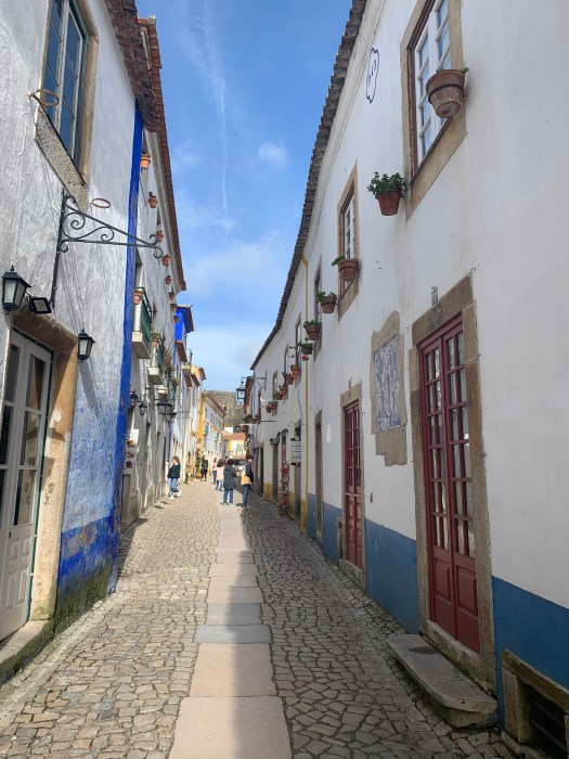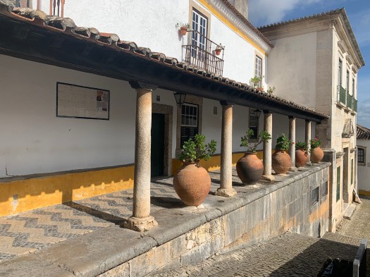 Merita una sosta, la piazza della chiesa di Santa Maria ( la chiesa era serrata) e il grazioso portico del 1100. Pranzato in un bar sulla piazza con due panini cotti al forno e ripieni, abbiamo poi continuato a gironzolare, senza una meta precisa, lungo i vicoli di Obidos .