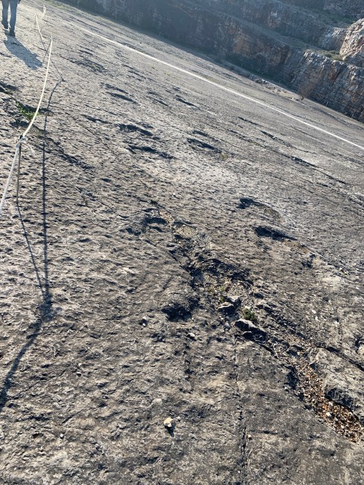 Lungo il percorso, abbiamo sostato a Barrio, una località dove sono state rinvenute tantissime impronte di dinosauri che, probabilmente, avevano passeggiato in questo luogo quando il terreno calcareo era coperto di fango, lasciando delle chiare impronte dei loro zamponi. Il sito che era stato coperto da sedimenti e quindi protetto, è rinvenuto a seguito di scavi di una cava ed ora è una piana visitabile dove le impronte, sono ben visibili , lungo il percorso.