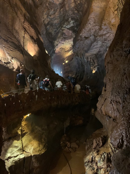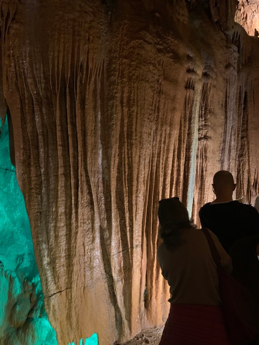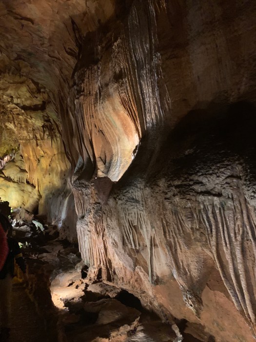 Queste grotte, a differenza delle altre visitate da noi in precedenza, sembrano proprio un tunnel sotterraneo scavato da un fiume che, con lo scorrere potente dell’acqua, ha modellato un enorme galleria sinuosa, che scende e si espande scolpendo le pareti della roccia calcarea come fosse burro.
