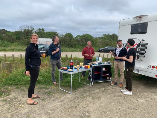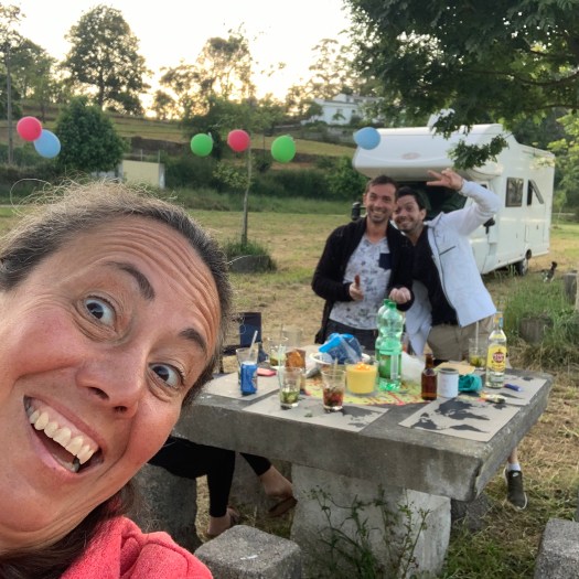 Ma la data della svolta che ha trasformato 6 perfetti sconosciuti in un specie di famiglia , è stata il 2 maggio quando, inaspettatamente, i due giovani francesi, che si erano presentati come Jerome e Yann, ci hanno invitato per un aperitivo fuori dal camper, per celebrare il compleanno del primo dei due.