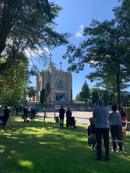 Mentre eravamo sul posto, si stava svolgendo una funzione liturgica all’aperto, subito fuori dall’edificio sacro e i fedeli, sparsi nella boscaglia o seduti sulle panche di pietra per il pick nick, ascoltavano assorti.