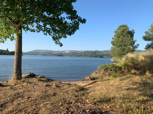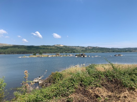 Nuovamente in moto, abbiamo percorso circa 25 chilometri prima di raggiungere la diga di Vilar, una gradevole località dove fermarci a far fare un bagno ai cani e rilassarci alla vista memorabile del lago artificiale, circondato da verdi colline, e qualche casolare sparso qua e là.
