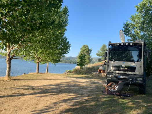 Percorrendo il perimetro del lago, lungo la strada che corre bassa vicino alle acque, notiamo che ci sono diverse opportunità per fermarci ma, ovunque, ci sono altre macchine e persone che pescano o si bagnano.