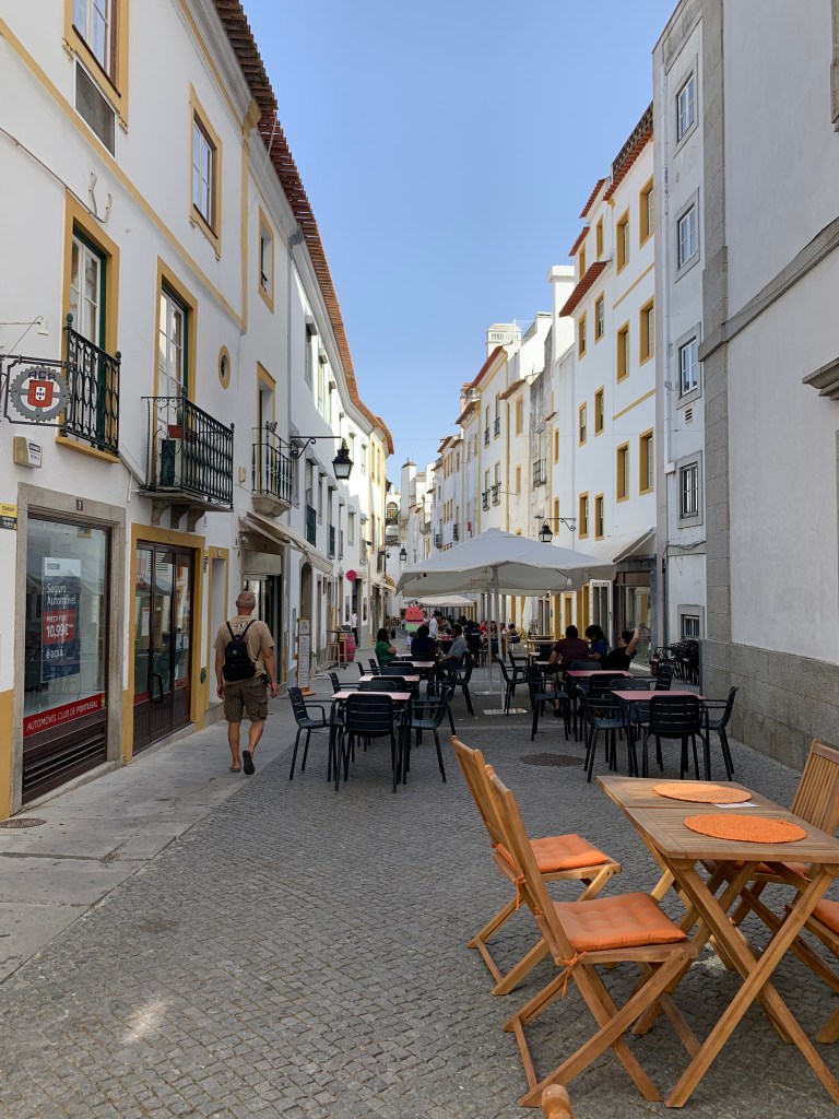 Camminando qualche centinaio di metri, abbiamo raggiunto la piazza do Giraldo, la principale della movida di Evora (in tempi no covid), dove tanti bar e negozi aprono i battenti.
