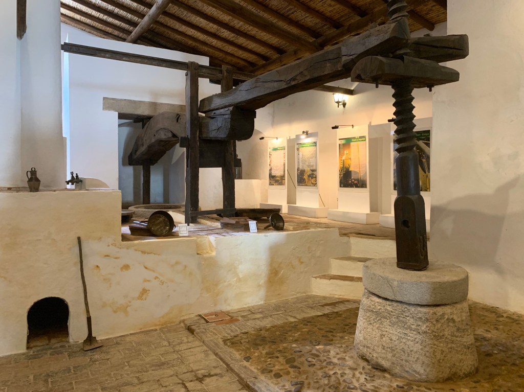 Il museo municipale era chiuso, allora ci siamo diretti verso il lagar de varas do Fojo, un frantoio che riproduce l’oleificio che era in attività nei tempi antichi, fra il 1841 ed il 1941, che usava il metodo tradizionale simile a quello dei romani, con gigantesche presse, tini e vari utensili in legno e pietra.