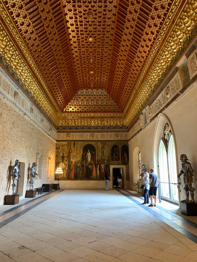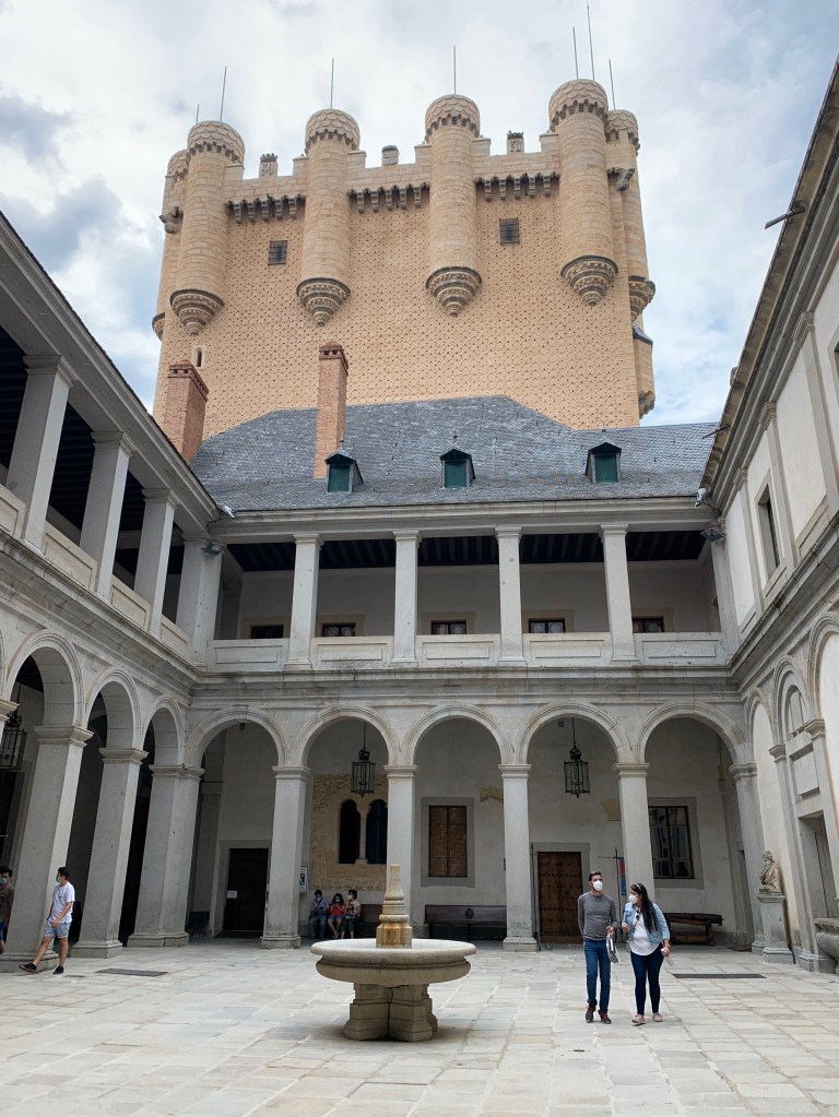 Torre fiabesche, pinnacoli sormontati da coperture in ardesia simili ad appuntiti cappelli da strega e il profondo fossato che lo circonda per l’intero perimetro, contribuiscono a rendere l’alcazar il prototipo del castello delle fiabe, al punto da avere ispirato Disney per il maniero della bella addormentata.