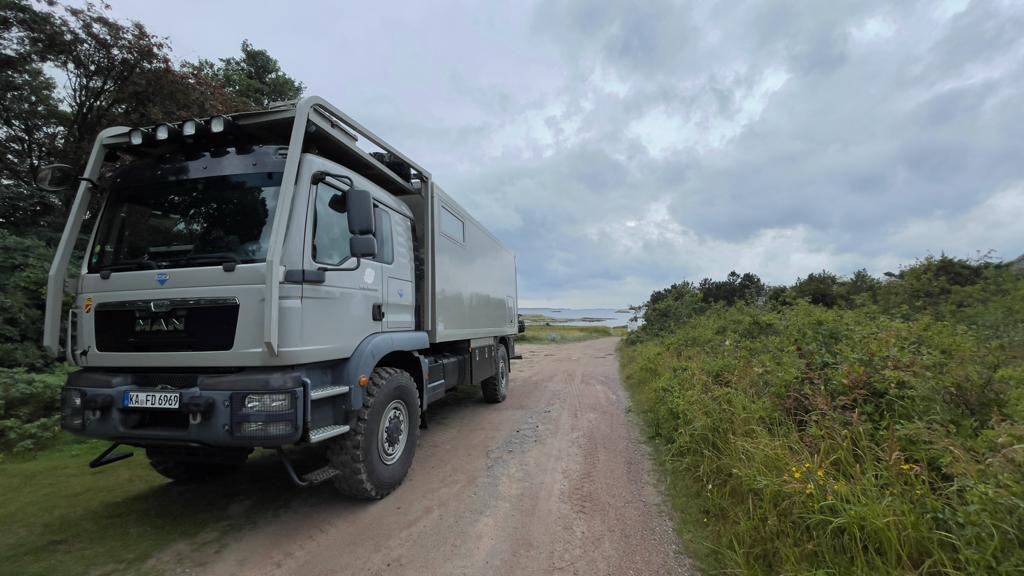 Prima di arrivare alla sosta notte, nella quale poi ci siamo fermati, avevo identificato una bella spiaggia appartata con Google Map e abbiamo optato per andare a vederla con i nostri occhi, nonostante continui a piovere dalla partenza da mollosund.
