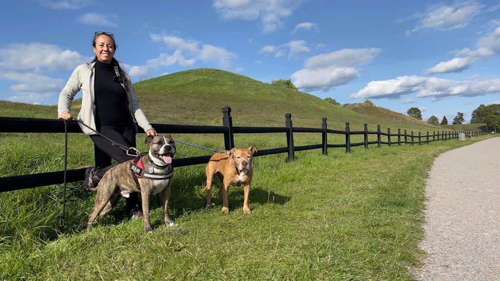 Lasciato il truck nel parcheggio, abbiamo camminato, con i nostri pelosi, lungo il sentiero ghiaioso che si snoda sul perimetro intorno ai più di 300 cumuli funerari , disseminati per il parco.