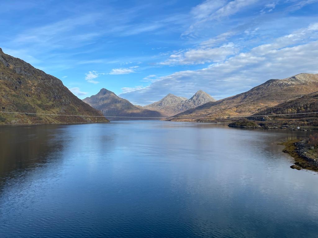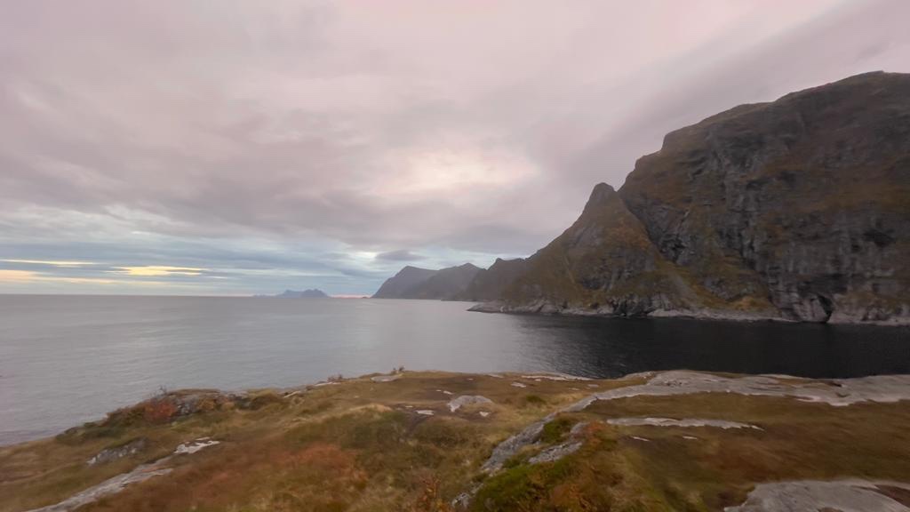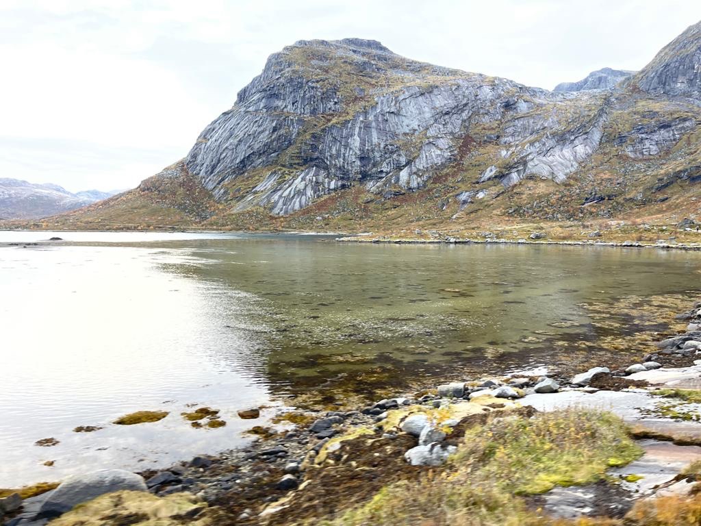 Un paesaggio diverso da quello svedese che risultava prevalentemente piatto e un po’ monotono; un paesaggio vario, una costa frastagliata con migliaia di scogli che emergono dalle acque cristalline del mare. Montagne aguzze , scure, che ergendosi al cielo, perdono la vegetazione rimanendo pura roccia o coperte da cespugli bassi.
