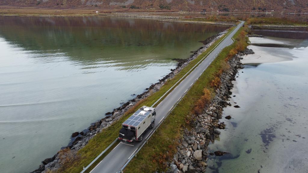 E’ stato singolare attraversare una galleria di circa due chilometri che è passata sotto il mare e soffermarci a riprendere il truck con il drone, lungo i passaggi sui ponti che collegano le varie isole.