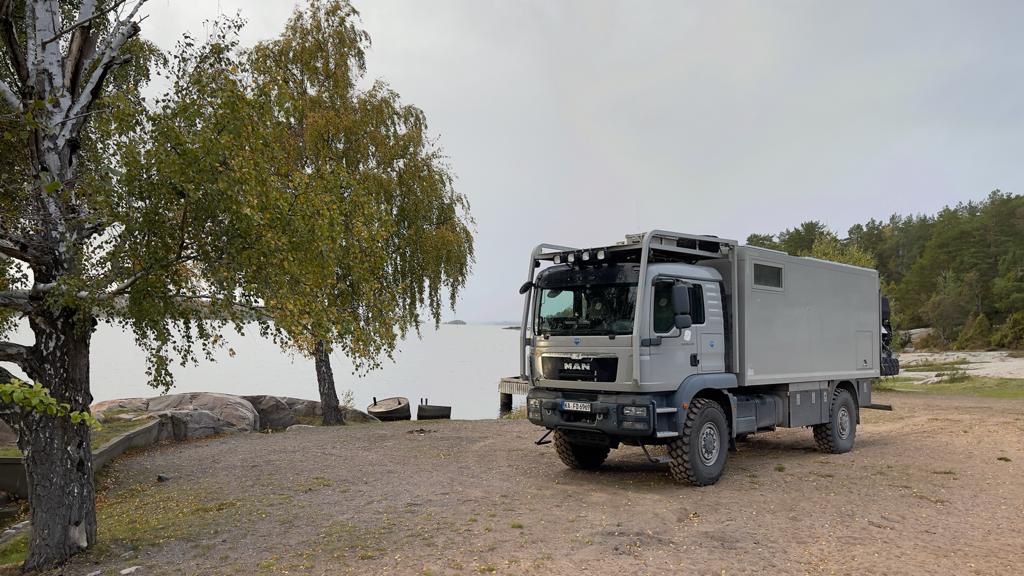 Eravamo accampati nel parcheggio del parco Skurugata , immersi nella natura, nel silenzio rotto solo dalle gocce che battevano sul tetto del truck. Noi, sotto il piumino del letto abbracciati ai nostri pelosi…una goduria.