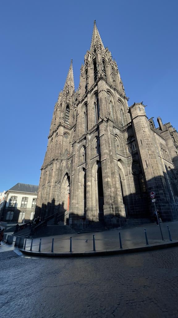 Giungiamo alla cattedrale della città, costruita in stile gotico, con pietre laviche provenienti dalla vicina città di Volvic.