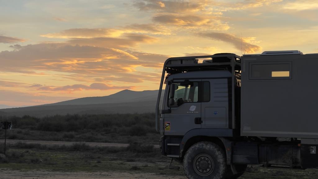 A pochi chilometri, troviamo uno spiazzo in mezzo alla steppa e decidiamo che è perfetto per la sosta notte.