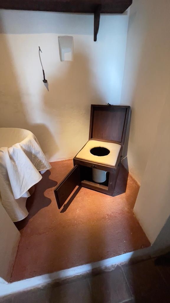 Al piano superiore, si trovano due camere con letto a baldacchino , un piccola nicchia con una tenda a coprire la “comoda” , una sedia che fungeva da wc e una vasca in metallo. Molte madie antiche, bauli, tavoli arabeggianti e seggiole dell’epoca, arredano le due camere.