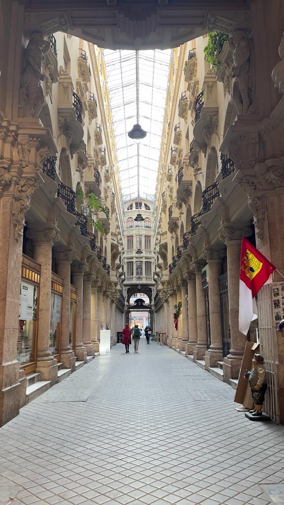 Spostatici in centro, parcheggiamo non distanti dalla zona della cattedrale di fronte alla quale si trova l’edificio che ospita il museo dei coltelli per i quali Albacete è molto famosa. Prima di recarci al museo che apre alle 17, facciamo due passi verso piazza Mayor e il Pasaje Lodares, una galleria con balconi risalente al 1929 in stile modernista.