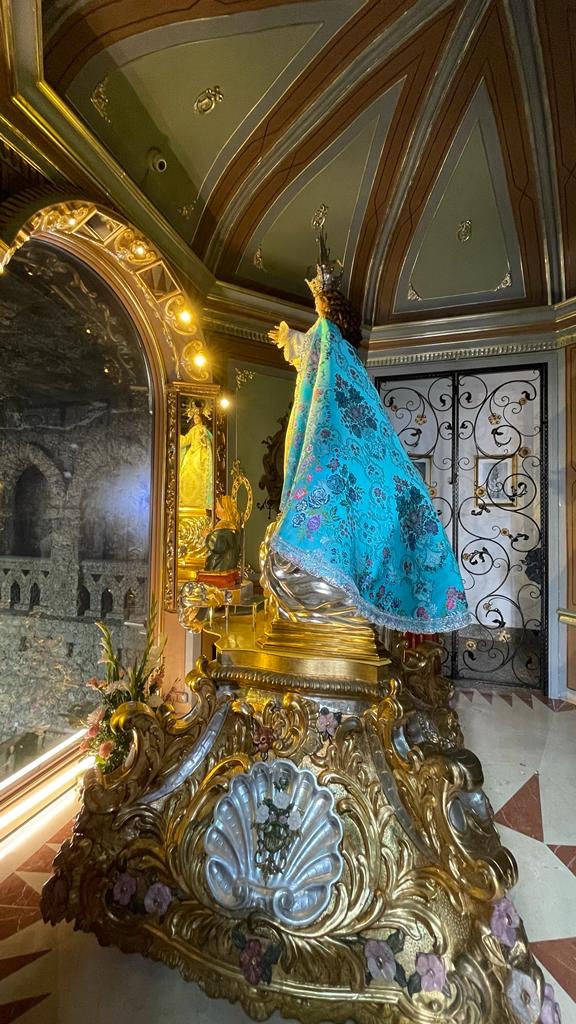 E’ possibile guardare da vicino la vergine attraverso delle grate e, appese alle pareti, ci sono delle candele votive dalle forme particolari: braccia, gambe, bambini, petto, testa…insomma le varie parti anatomiche umane.