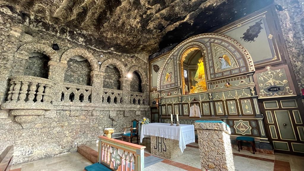 La grotta ha una sorgente di acqua che esce dalla parete rocciosa, che è stata benedetta dal papa e la nicchia sopraelevata dove si trova la vergine, dietro una vetrata, ha un effetto tridimensionale.