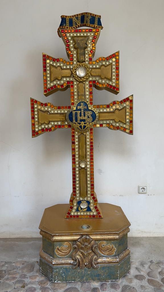 La cappella è molto sobria ed il pezzo della croce viene custodito in una custodia d’oro in una nicchia.