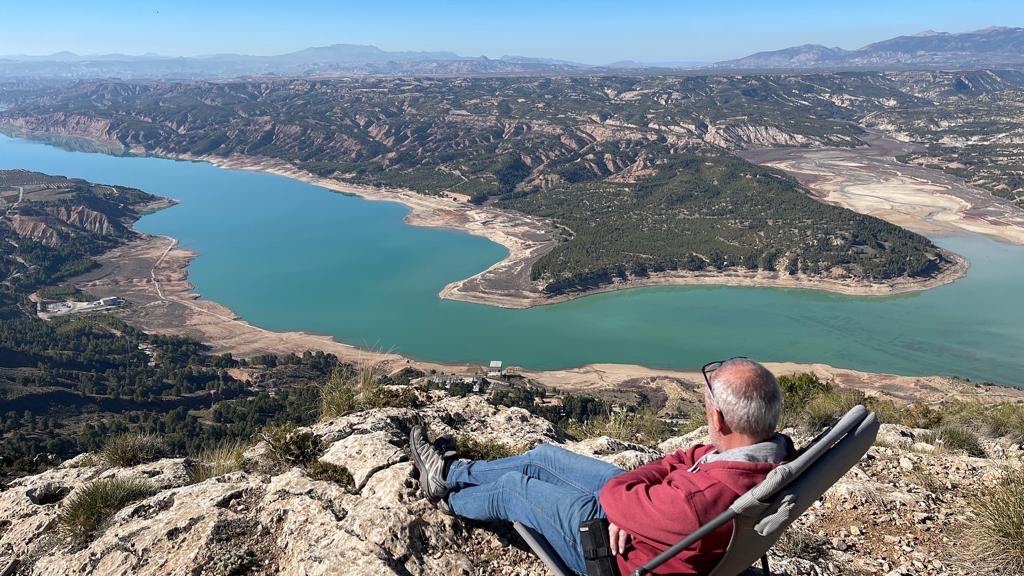 Come dal santuario, anche da qui il panorama è veramente incredibile: il lago artificiale, i calanchi, ed il cielo azzurro ci fanno propendere per scegliere questo posto, abbastanza isolato, come location dei prossimi due o tre giorni.