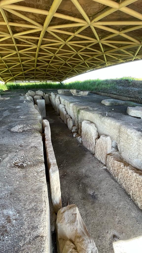 All’area si può comunque accedere e noi percorriamo un centinaio dì passi che ci separano dalla copertura che protegge questo reperto.