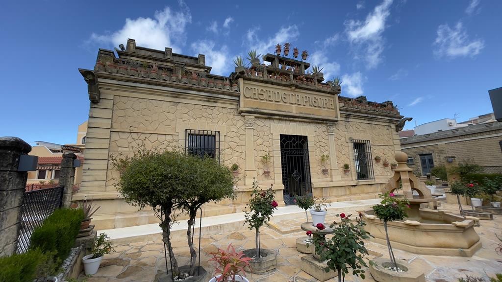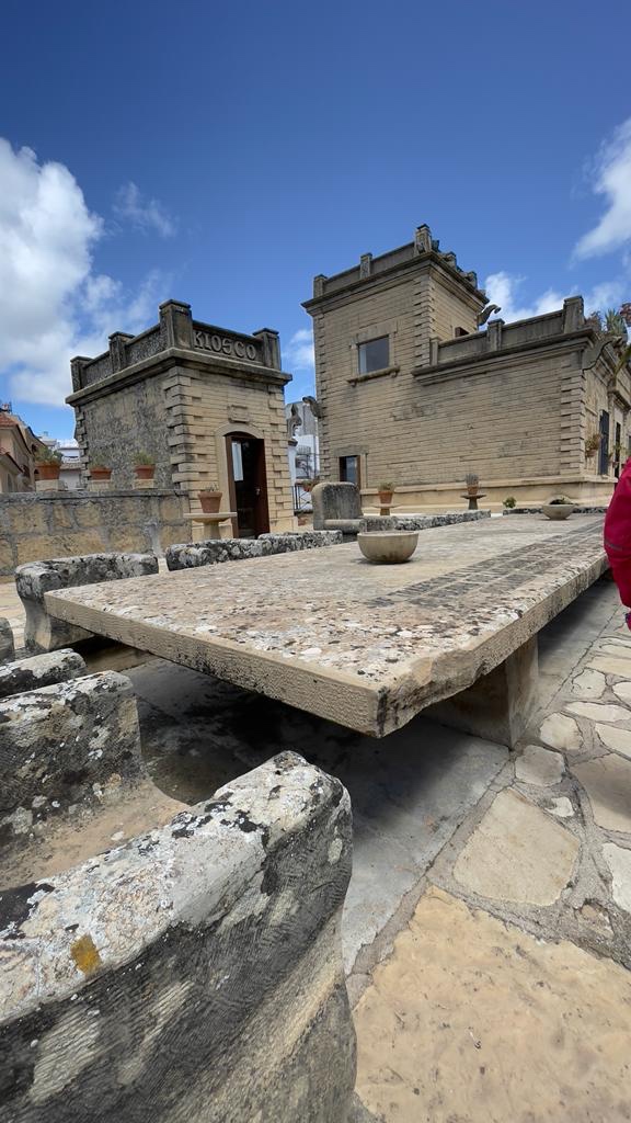 Prende il nome di “casa della pietra” dall’enorme masso trovato nella sua cava e posto nel giardino, che funge da tavola, circondato da dodici poltrone di pietra, a ricordare la tavola “dell’ultima cena di Gesu’”.