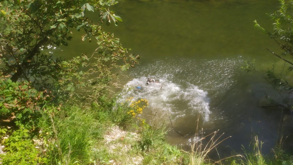 Accolti dalla nostra amica, prepariamo insieme una pastasciutta e trascorriamo l’intero pomeriggio a far chiacchiere; Odino approfitta del fiume per fare qualche bagno, tenuto alla longhino da Davide e la Niky sonnecchia sotto l’ombra degli alberi.