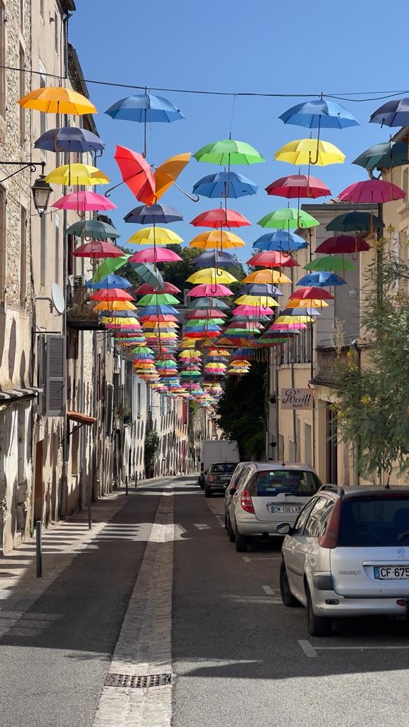 La grande chiesa in stile gotico si trova nella parte alta del villaggio mentre la strada principale del paese, la Grand rue, ombreggiata da simpatici ombrelli colorati, ospita l’ufficio turistico, i negozi e le antiche case in pietra.